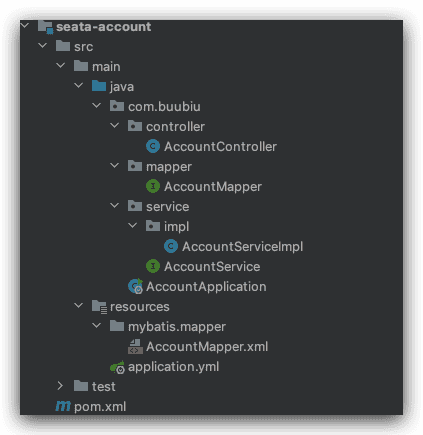 seata-account 子项目,主要提供账户服务,根据订单扣钱操作;