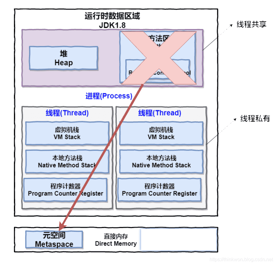 下图是 Java 内存区域,通过下图我们从 JVM 的角度来说一下线程和进程之间的关系。