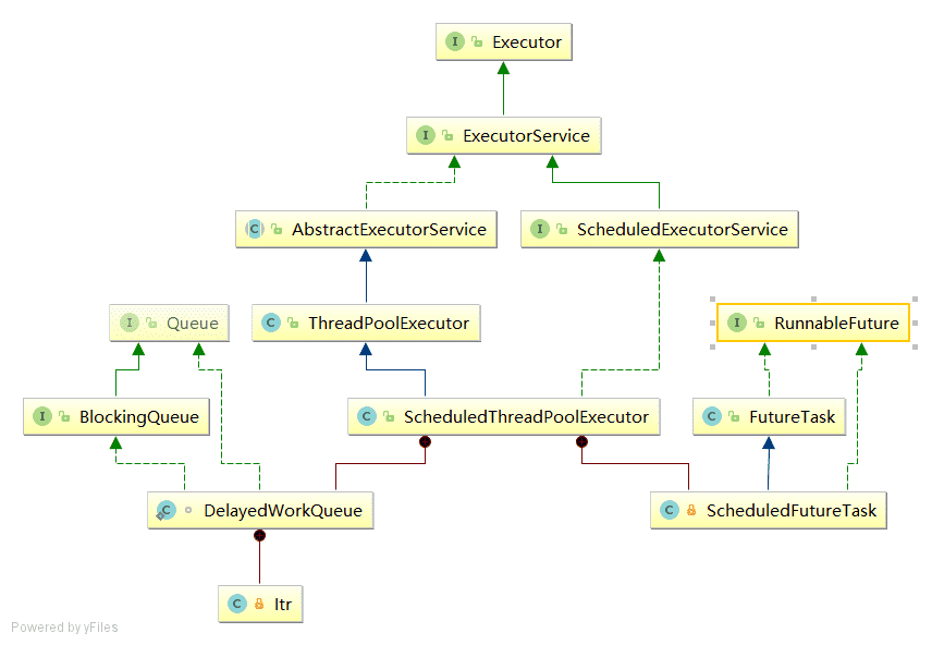 - 从UML图可以看出,ScheduledThreadPoolExecutor继承了