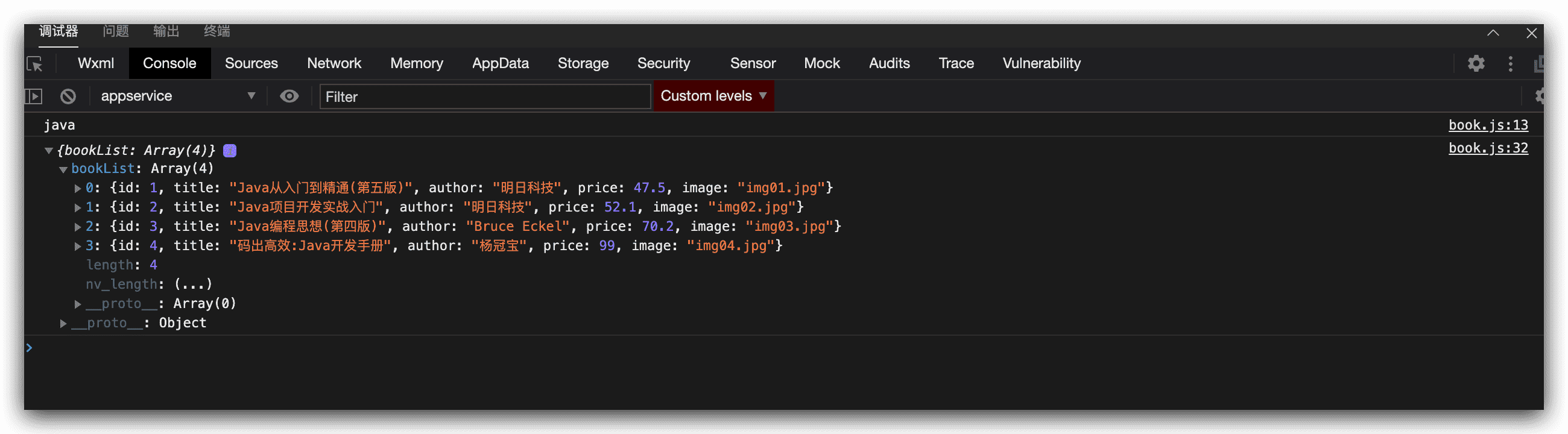 book.wxml1 2 3 4 5 6 7 8 9 10