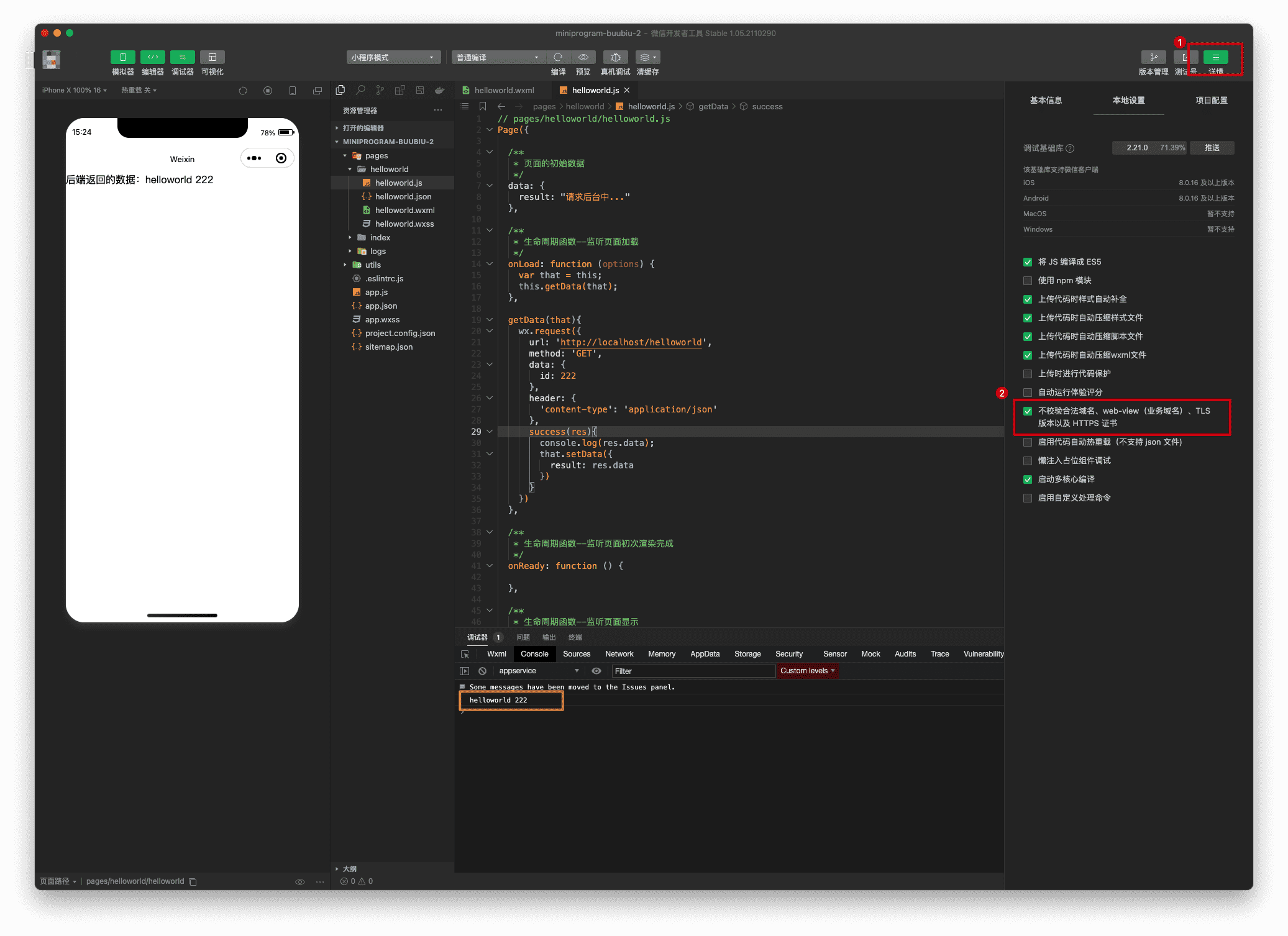 详情->本地设置->勾选 “不校验合法域名、web-view (业务域名)、TLS版本以及HITPS证书”