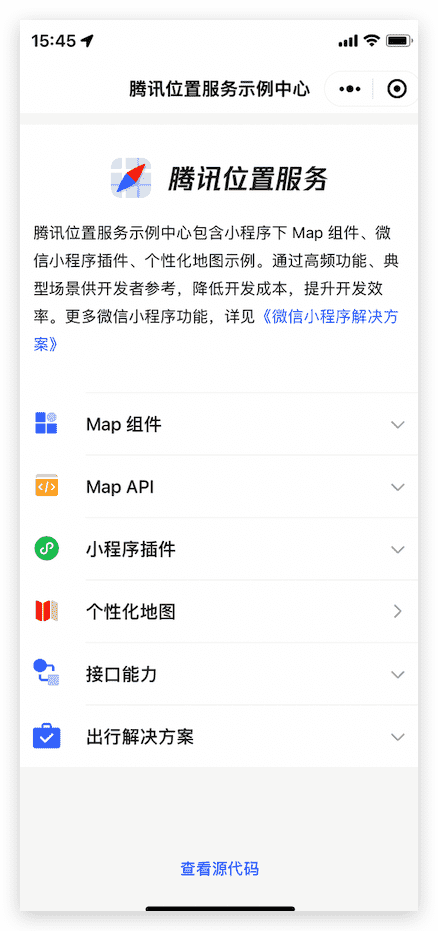 除本章节介绍的小程序地图基础属性外,腾讯位置服务推出《微信小程序解决方案》,从检索API、基础地图组件、个性化、插件、行业方案等多个层面,为不同场景需求的小程序开发者提供完整的地图能力。