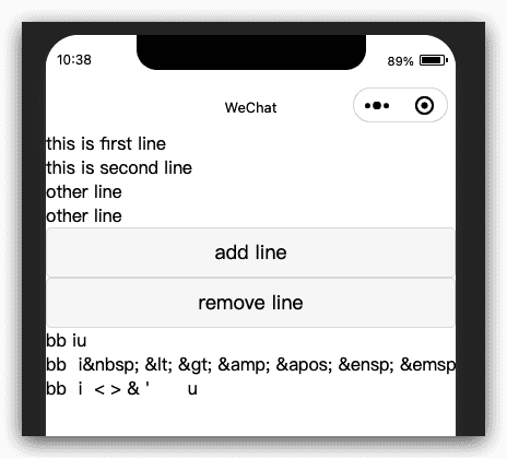 tip: decode可以解析的有<>&'tip: 各个操作系统的空格标准并不一致。tip:text 组件内只支持 text 嵌套。tip: 除了文本节点以外的其他节点都无法长按选中。bug: 基础库版本低于2.1.0时, text 组件内嵌的 text style 设置可能不会生效。