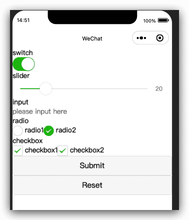 表单组件由一系列组件组成,包括: button、checkbox、form、 input、 label、 picker、picker - view 、radio、slider 、switch和 textarea。熟悉WEB开发的朋友应该知道表单在WEB开发中应用非常广泛, 表单主要用来构建与用户进行的交互,因而建议大家务必重点掌握表单组件的应用。