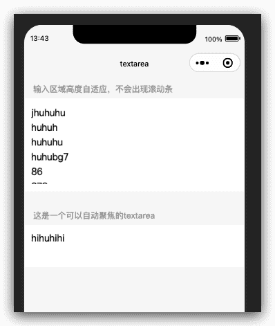 tip:textarea的blur事件会晚于页面上的tap事件,如果需要在button的点击事件获取textarea,可以使用form的bindsubmit。tip: 不建议在多行文本上对用户的输入进行修改,所以textarea的bindinput处理函数并不会将返回值反映到textarea上。tip: 键盘高度发生变化,keyboardheightchange事件可能会多次触发,开发者对于相同的height值应该忽略掉bug: 微信版本6.3.30,textarea在列表渲染时,新增加的textarea在自动聚焦时的位置计算错误。