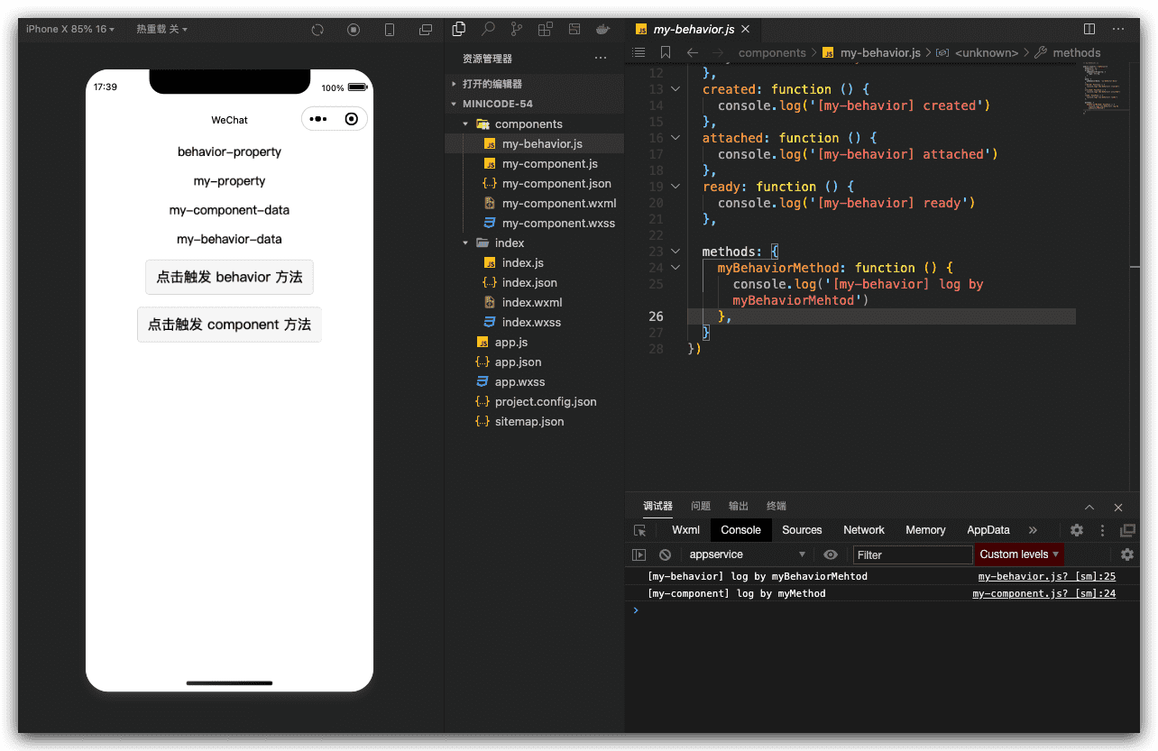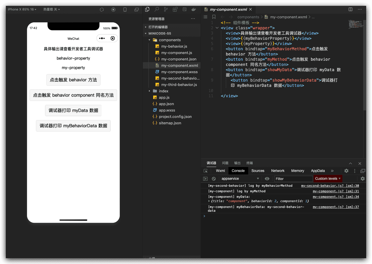 在上例中, my-component 组件定义中加入了 my-behavior,