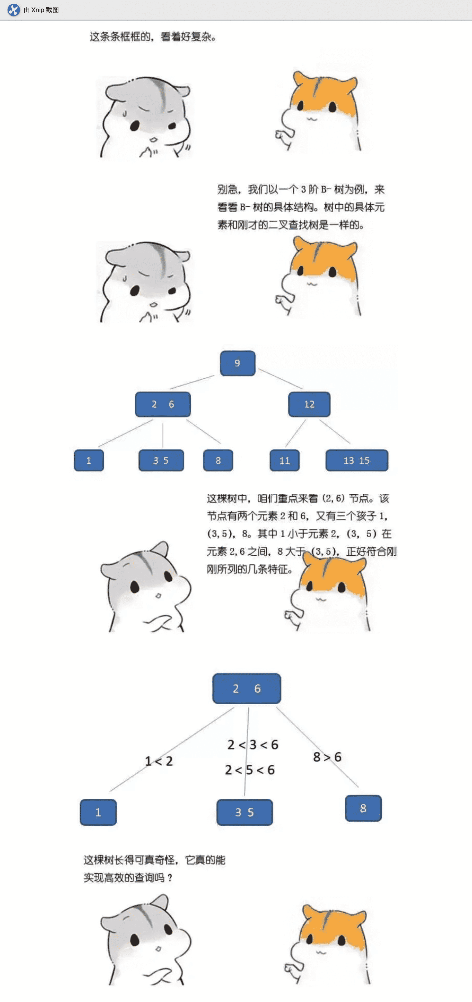 本文提到的「B-树」,就是「B树」,都是 B-tree 的翻译,里面不是减号-,是连接符-。因为有人把 B-tree 翻成 「B-树」,让人以为「B树」和「B-树」是两种树,实际上两者就是同一种树。