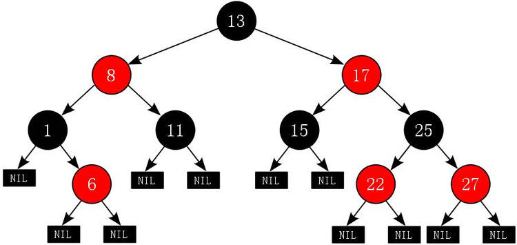 - 对每个结点,从该结点到其所有后代叶结点的简单路径上,均包含相同数目的黑色结点。