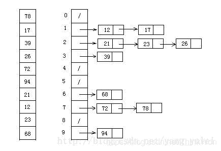 int length = array.length; LinkedList<Integer>[] bucket = (LinkedList<Integer>[]) new LinkedList[length];