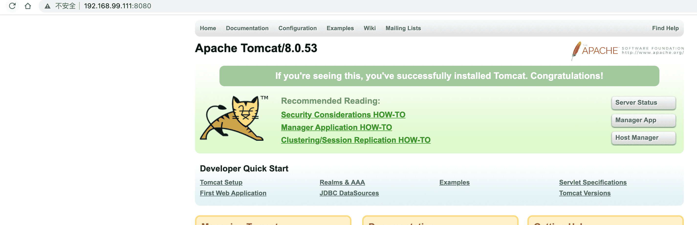 现在我们使用浏览器,输入任意节点 IP:8080 ,即可看到 tomcat 默认页面。