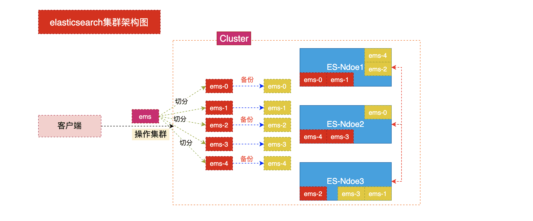 - 允许你在分片(潜在地,位于多个节点上)之上进行分布式的、并行的操作,进而提高性能/吞吐量 至于一个分片怎样分布,它的文档怎样聚合回搜索请求,是完全由Elasticsearch管理的,对于作为用户的你来说,这些都是透明的。