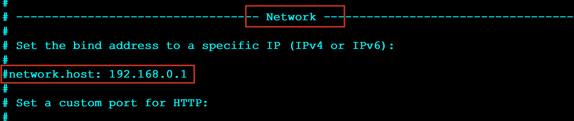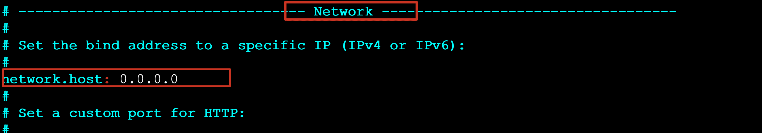 1 | vim elasticsearch.yml 将原来network修改为以下配置: |