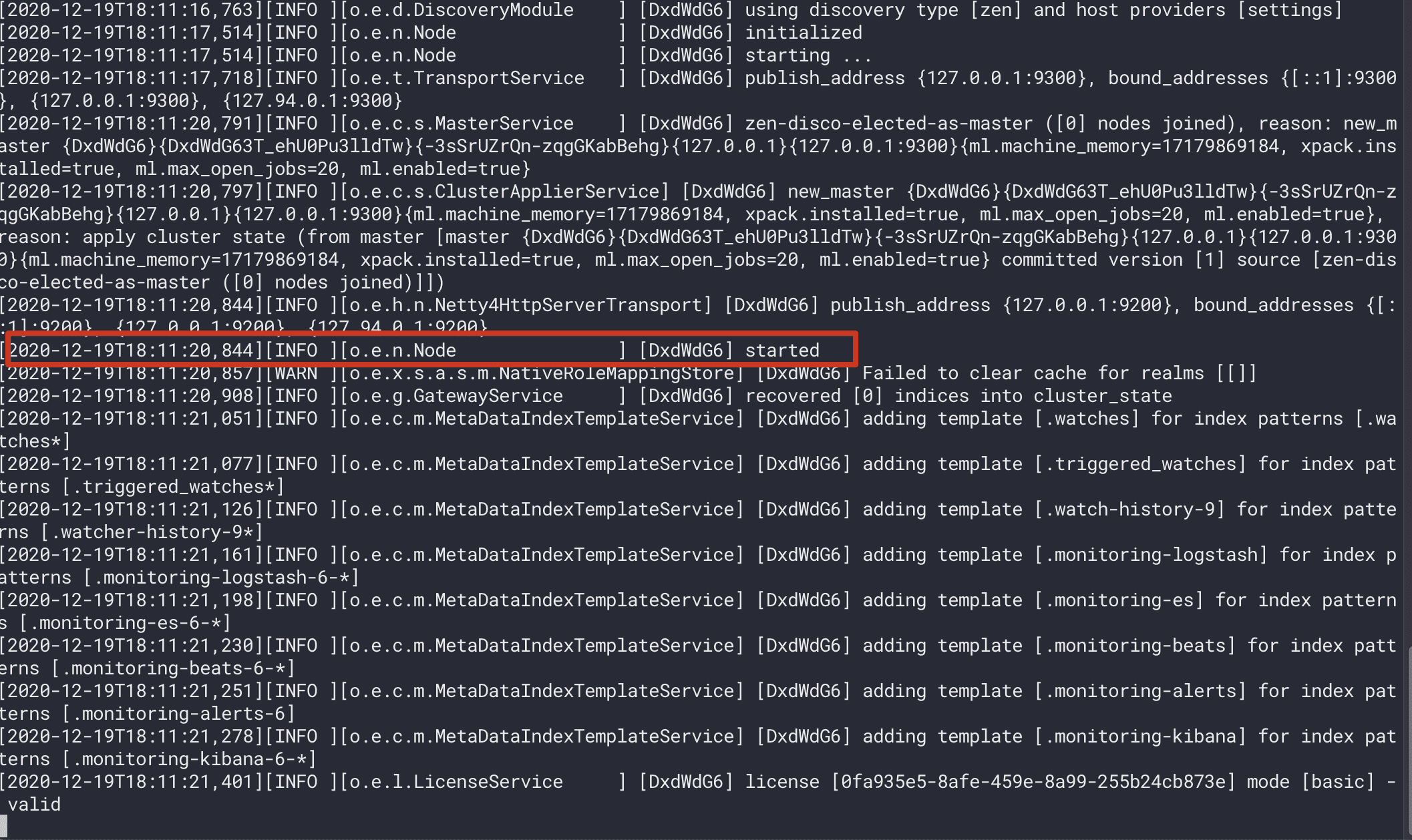 出现下图红框日志表示启动成功