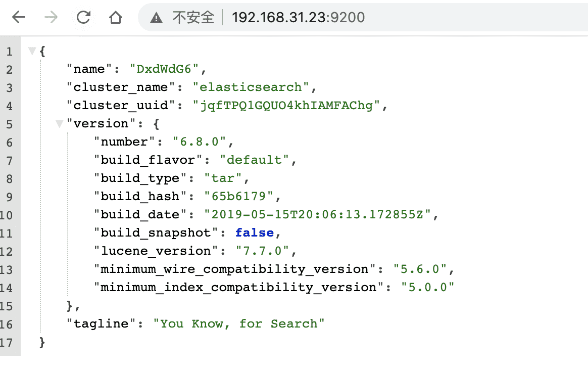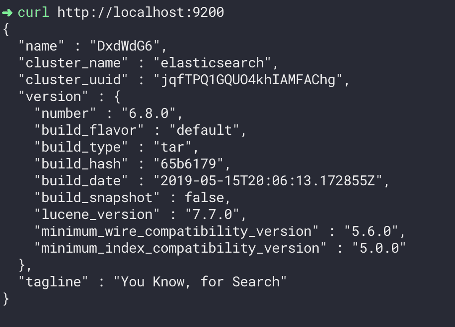 1 | curl http://localhost:9200 |