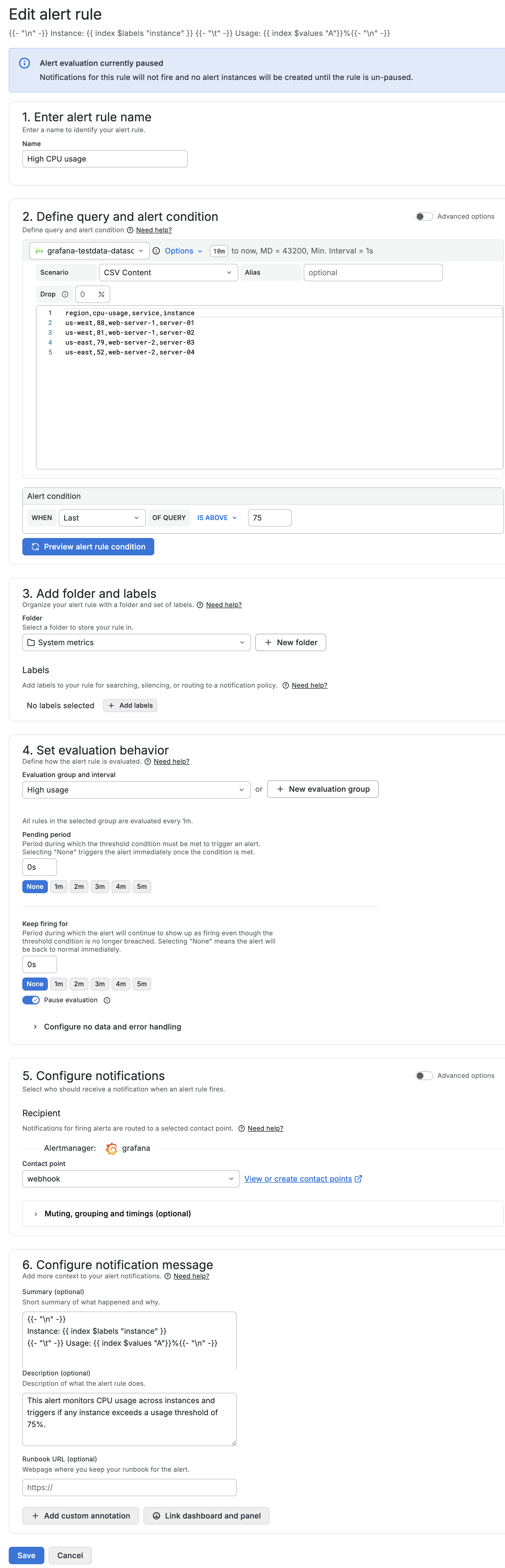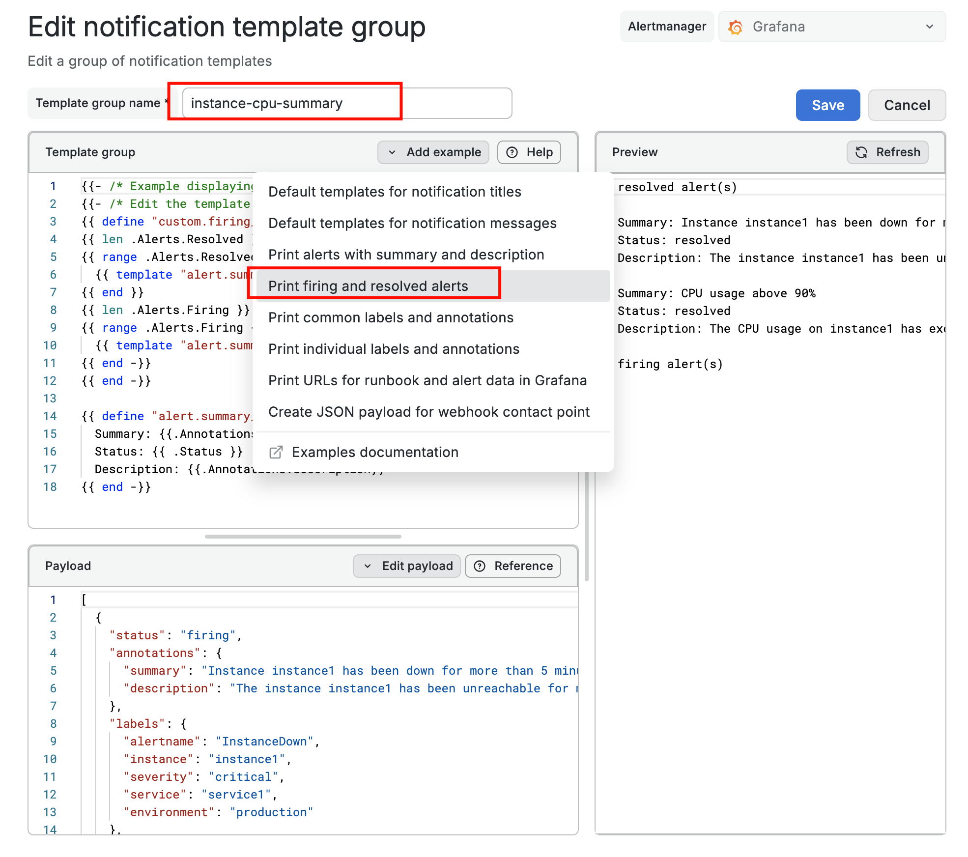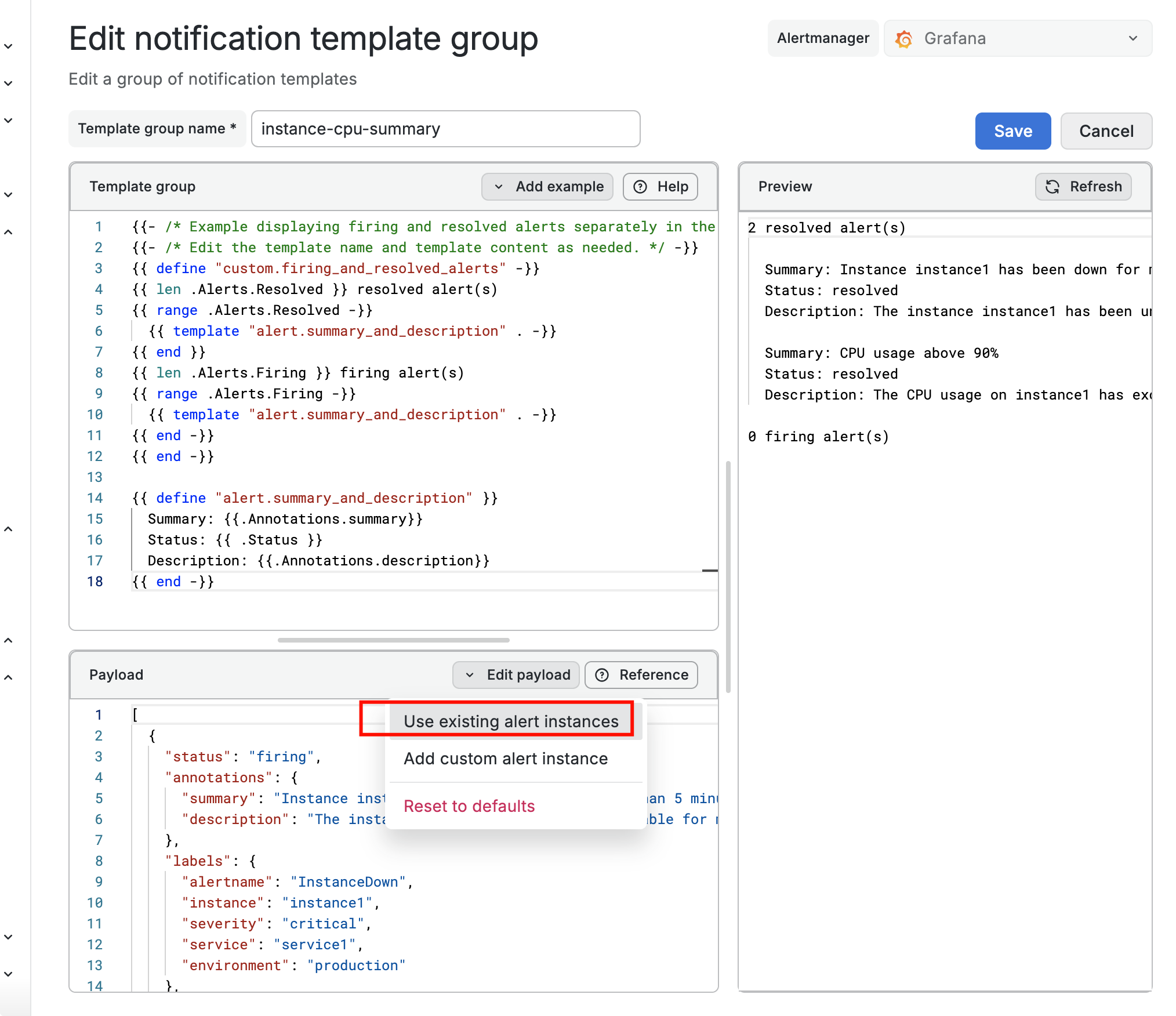 - 自定义每个告警实例的内容,如包含实例名称和指标数值