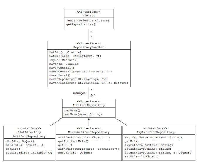 下图是配置不同仓库对应的Gradle API: