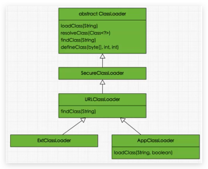 ClassLoader 类是一个抽象类,其后所有的类加载器都继承自 ClassLoader(不包括启动类加载器)