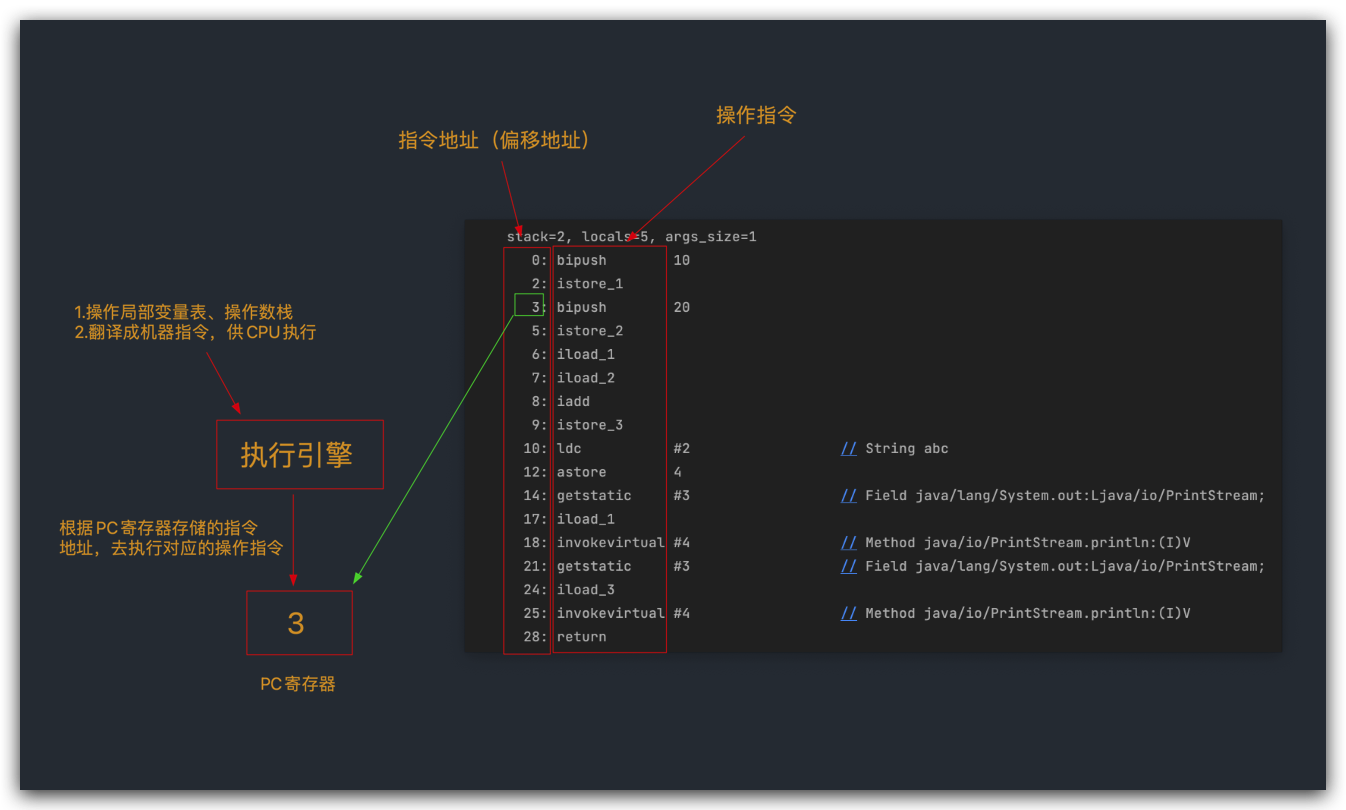 PC寄存器用来存储指向下一条指令的地址,也即将要执行的指令代码。由执行引擎读取下一条指令。