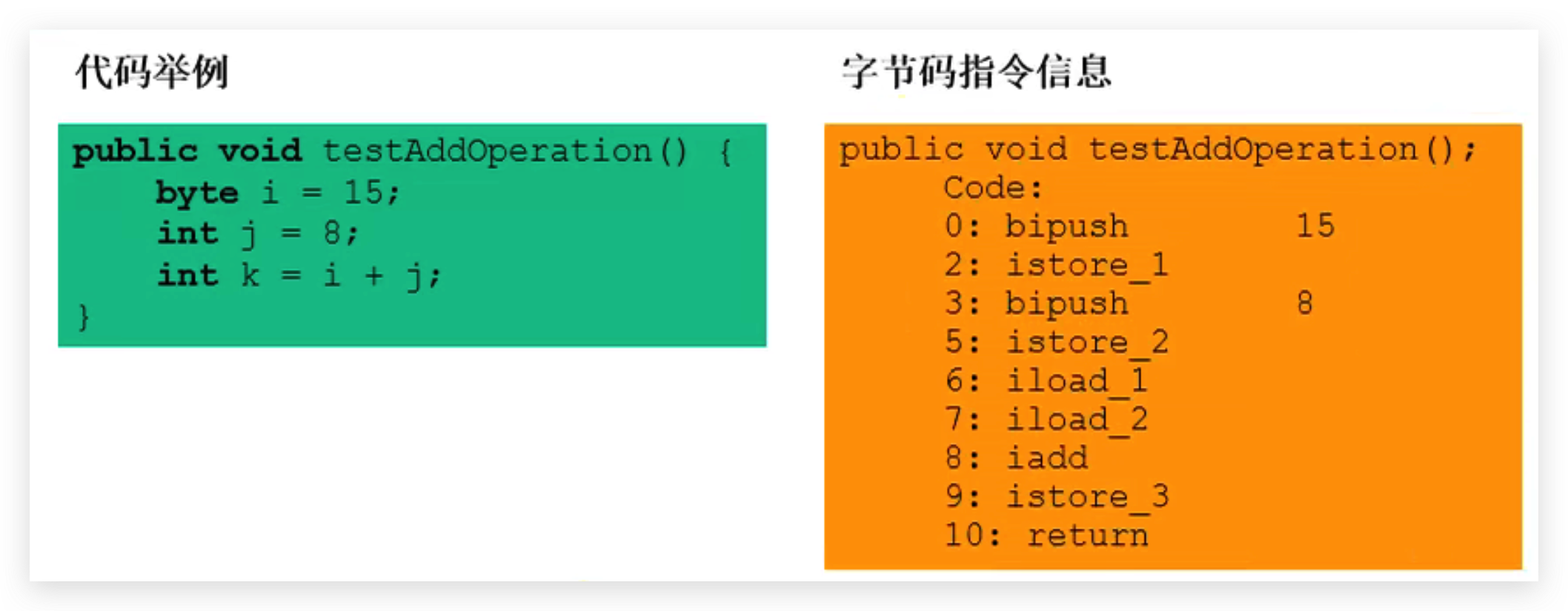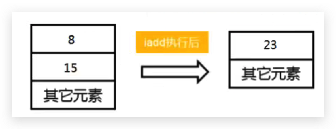 然后将操作数栈中的两个元素出栈让执行引擎通过CPU执行相加操作,并存储在操作数栈中