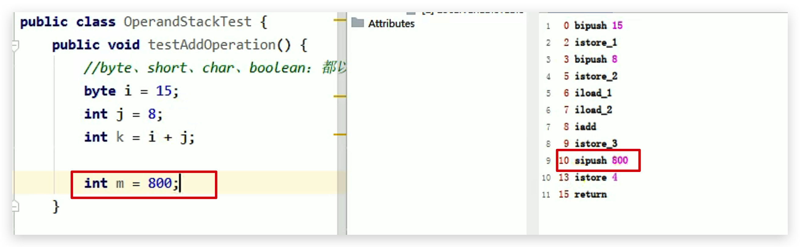 m改成800之后,byte存储不了,就成了short型,sipush 800