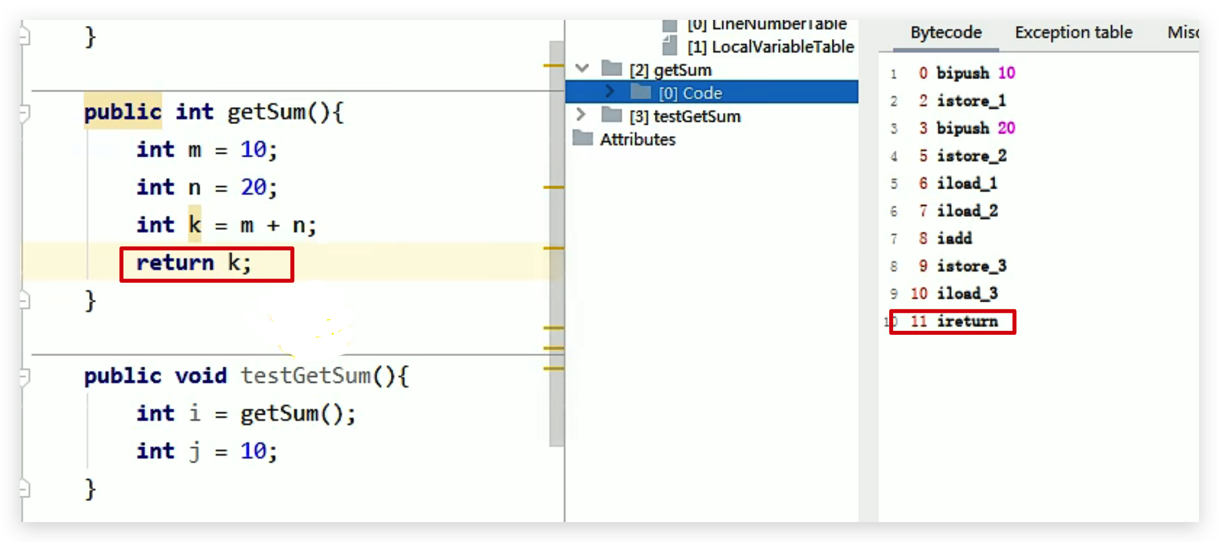 getSum() 方法字节码指令:最后带着个 ireturn