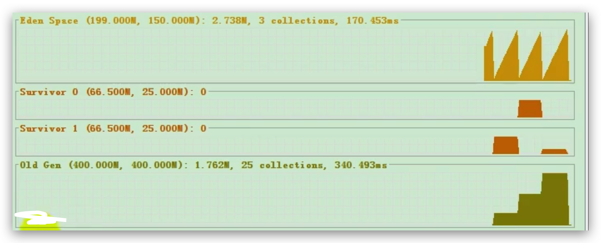 - ③ YoungGC后,存活对象大于survivor大小,也大于老年大可用空间大小,老年代也放不下这些对象了,此时就会发生“Handle Promotion Failure”,就触发了 Full GC。如果 Full GC后,老年代还是没有足够的空间,此时就会发生OOM内存溢出了。