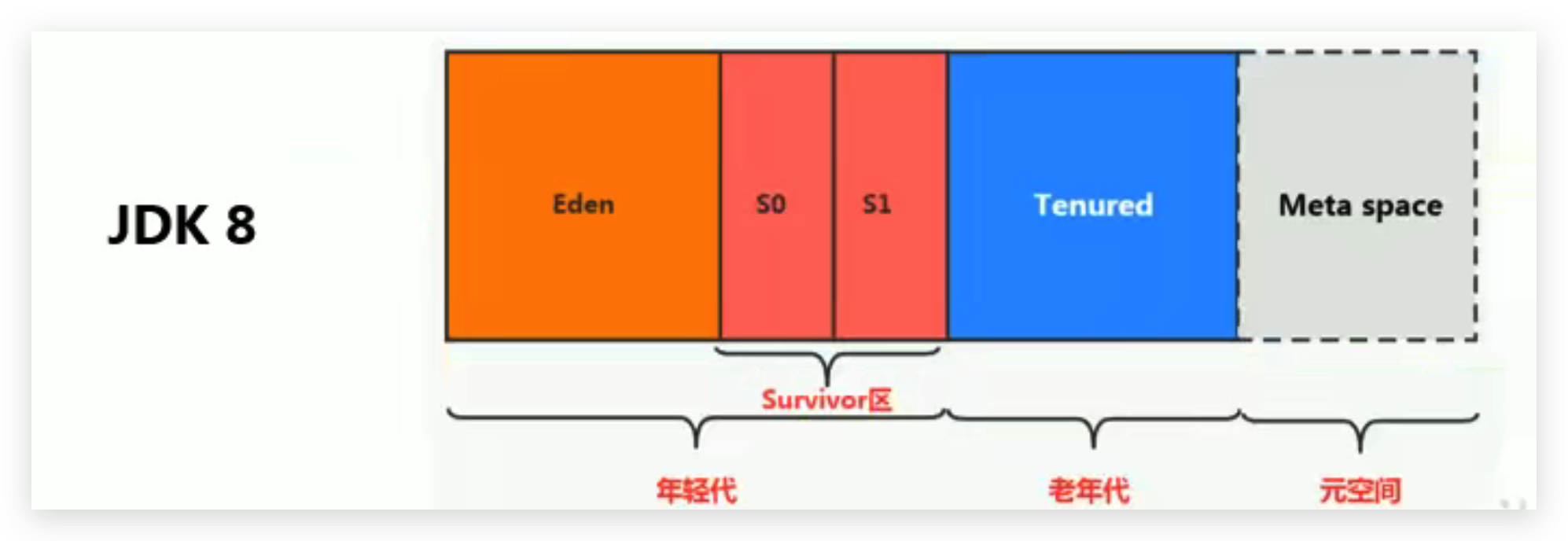- 新生代:有Eden、两块大小相同的survivor(又称为from/to或s0/s1)构成,to总为空。