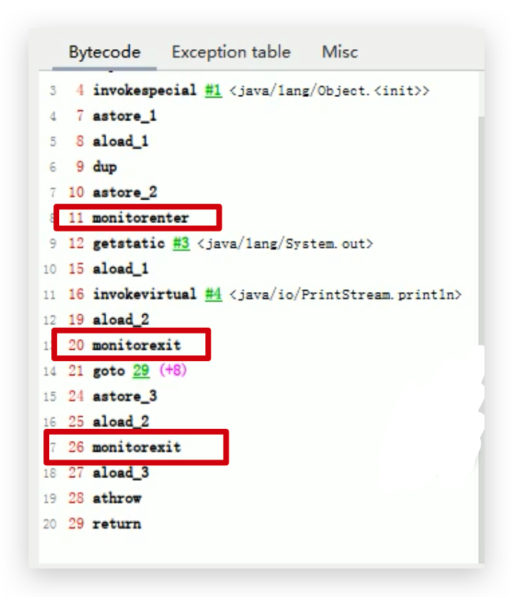 注意:字节码文件中并没有进行优化,可以看到加锁和释放锁的操作依然存在,同步省略操作是在解释运行时发生的