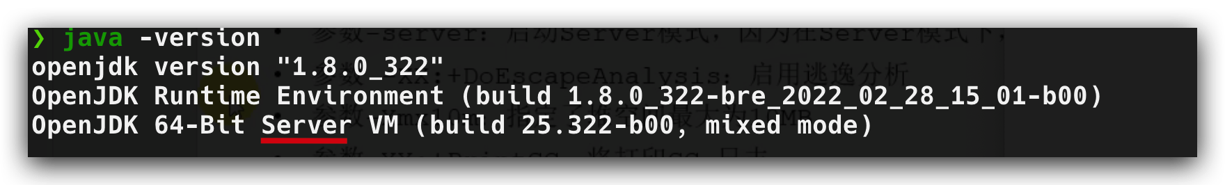 注意:逃逸分析只能在java服务器端的模式下才会开启,不过我们本地安装的java都是server端,从java 版本命令上可以看出: