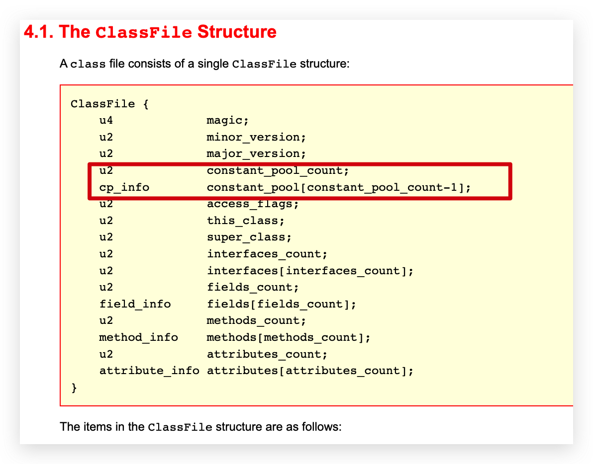 官方文档:https://docs.oracle.com/javase/specs/jvms/se8/html/jvms-4.html