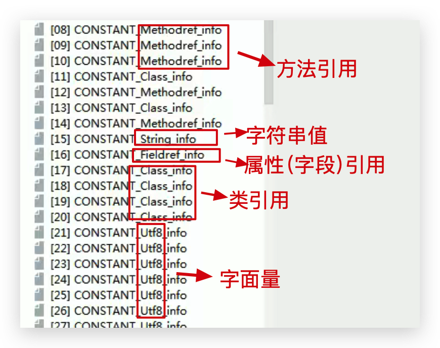 一个有效的字节码文件中除了包含类的版本信息、字段、方法以及接口等描述符信息外。还包含一项信息就是常量池表(Constant Pool Table),包括各种字面量(固定值,字符串等)和对类型、域和方法的符号引用。