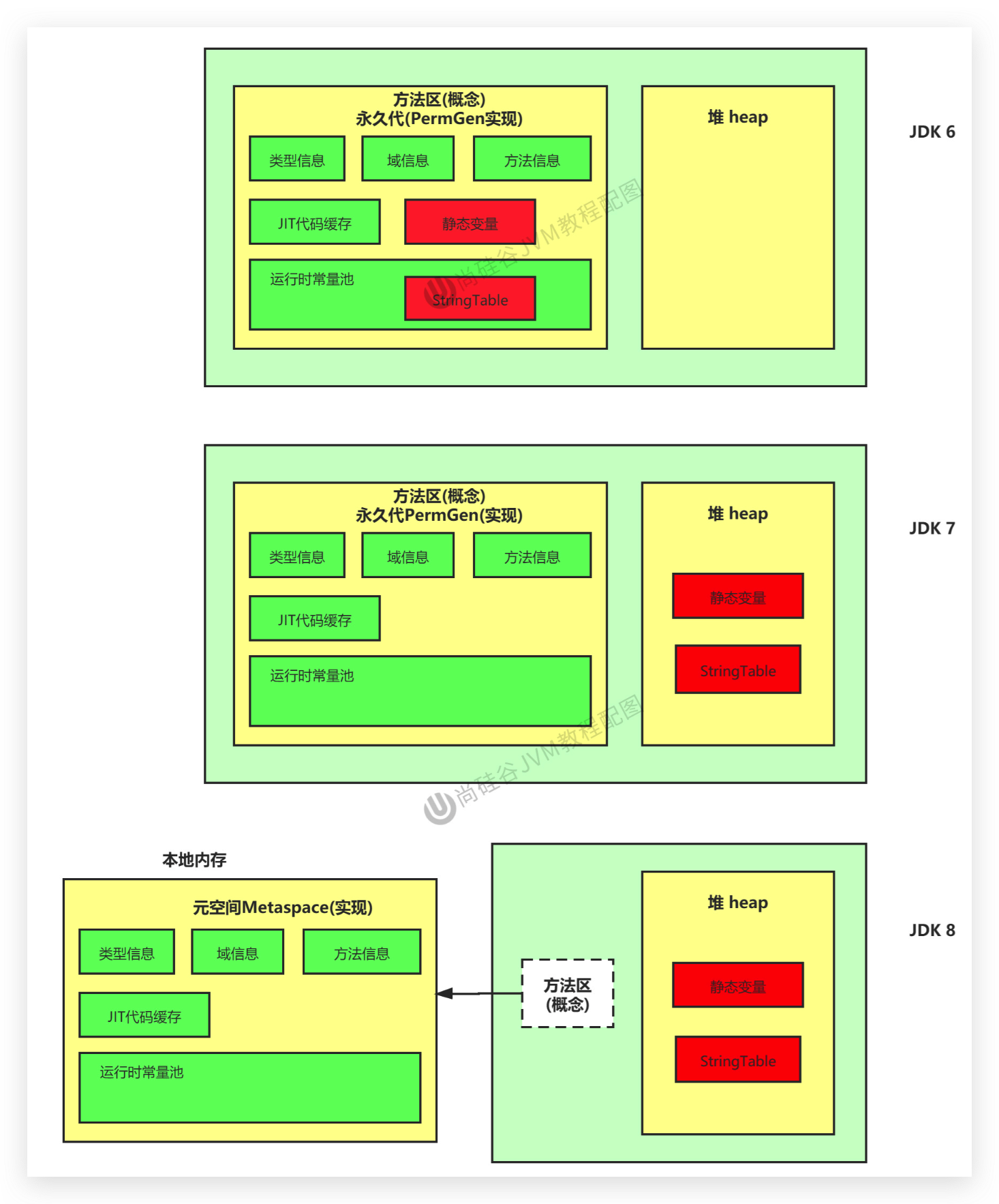 - 只是那个静态变量(相当于arr变量名)在JDK6,JDK7,JDK8存放位置中有所变化