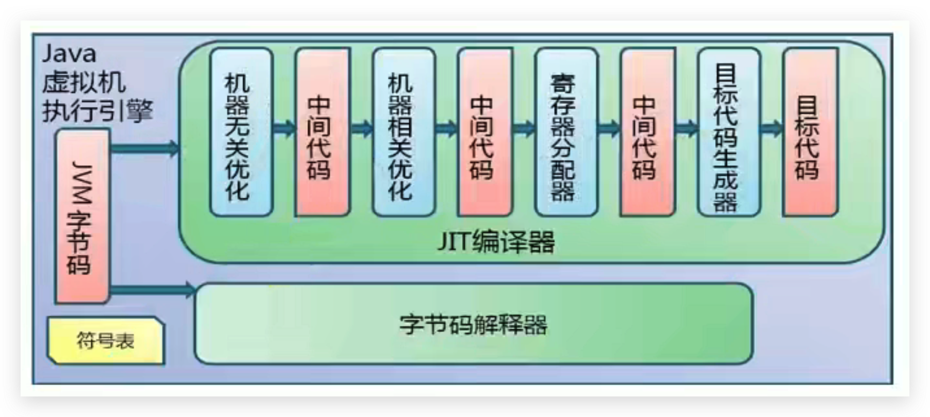 后面绿色(解释执行)和蓝色(即时编译)才是JVM需要考虑的过程