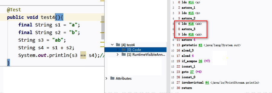 为变量 s4 赋值时,直接使用 #16 符号引用,即字符串常量 “ab”。