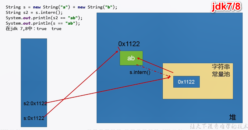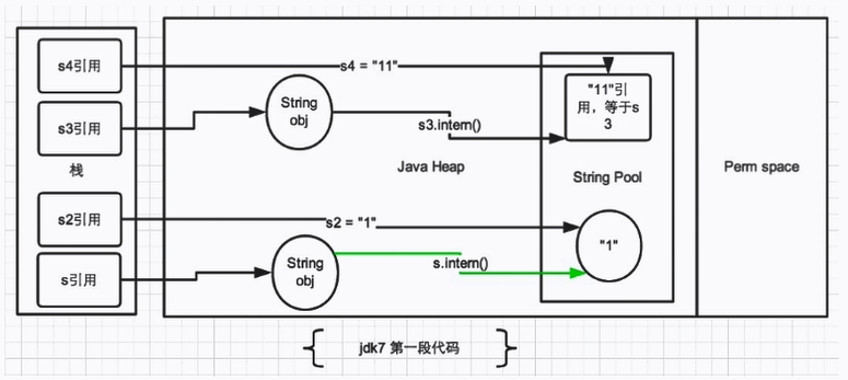 - 所以在JDK7后续版本中,s3和s4指向的完全是同一个地址。