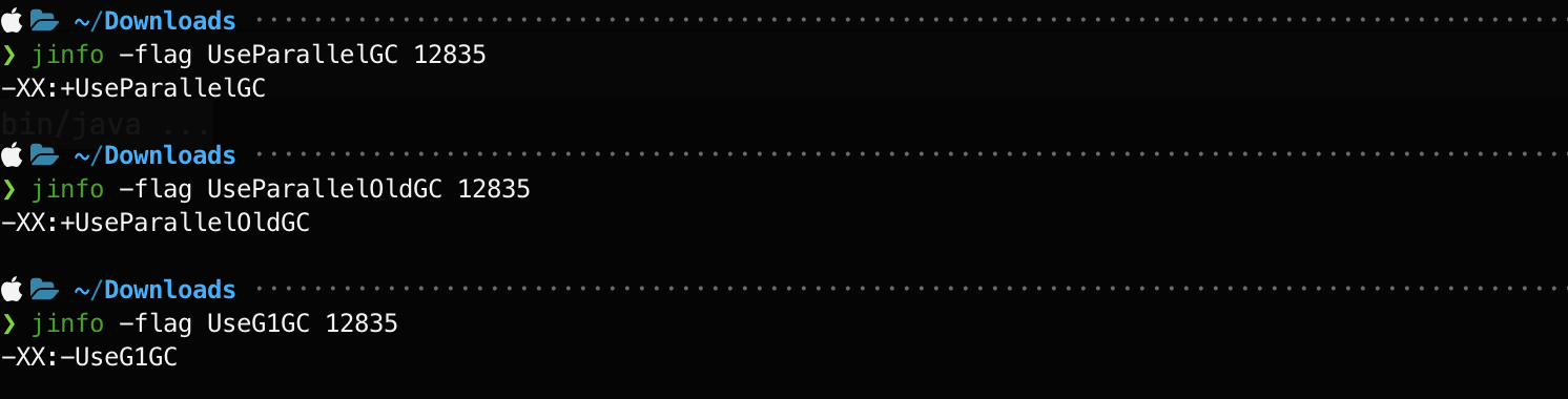 jinfo -flag 相关垃圾回收器参数 进程ID