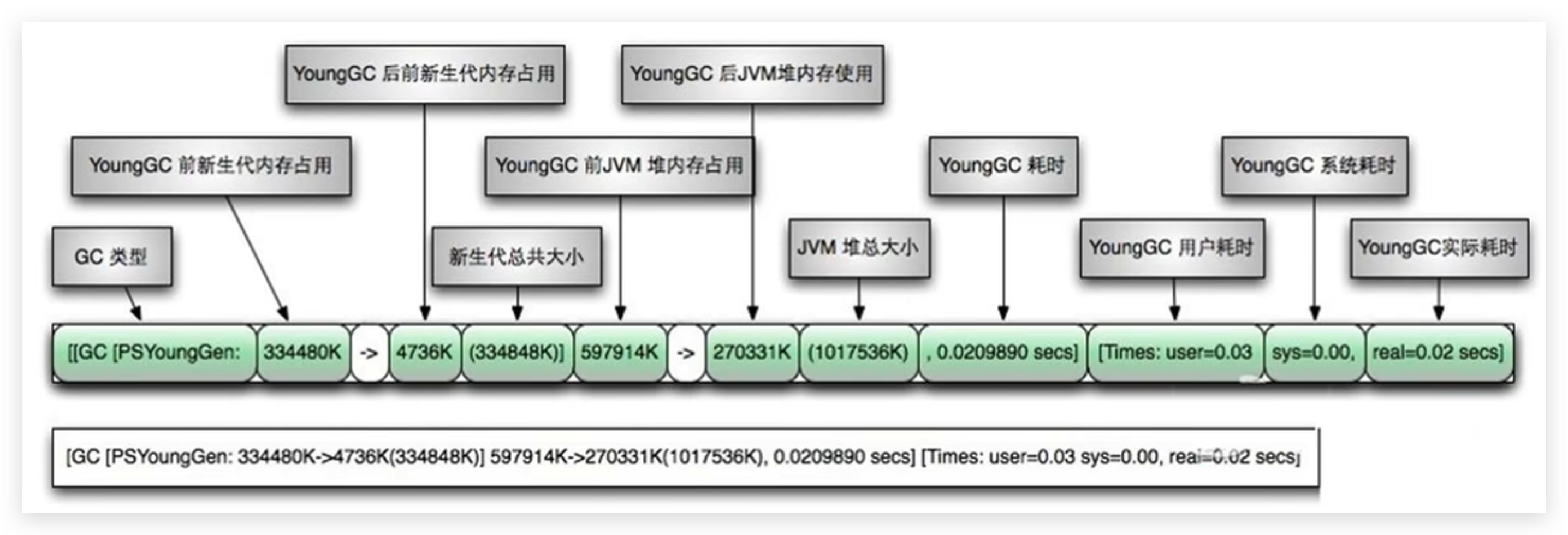 - 中括号外:GC回收前年轻代和老年代大小 -> 回收后大小(年轻代和老年代总大小)