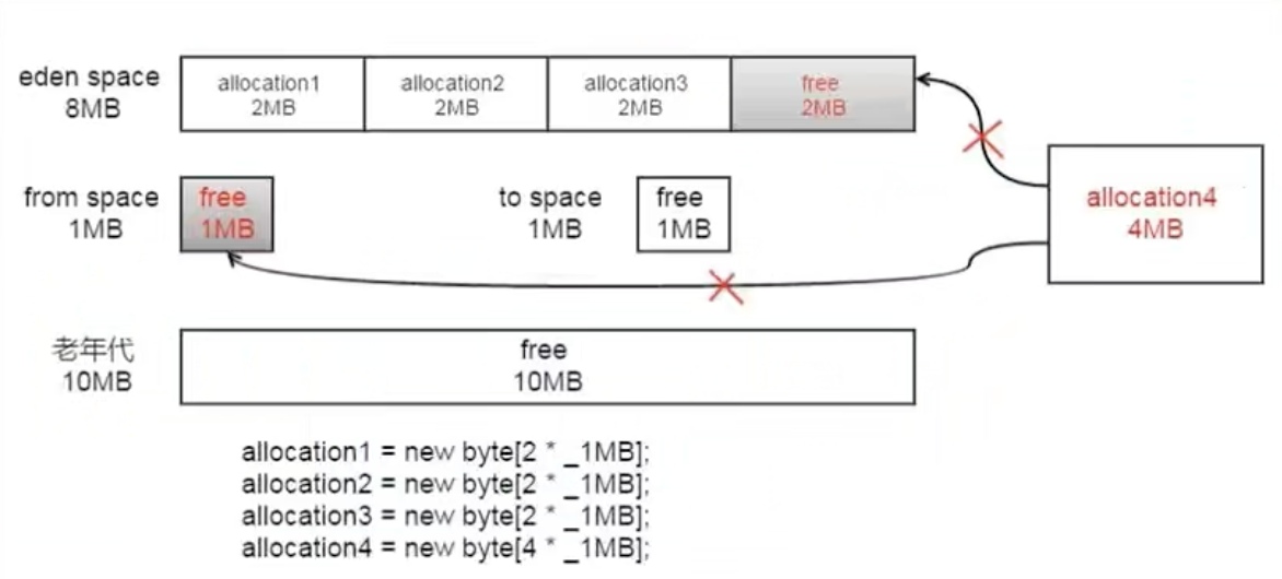 - 然后将3个2M的数组存入到Eden区中