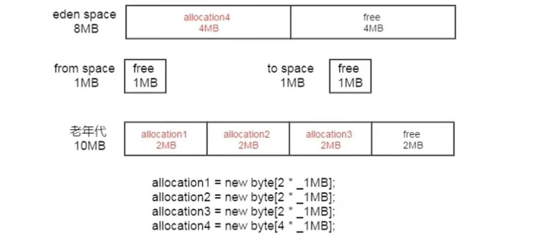 部分jdk8版本还是像7一样,不会把4M直接放到老年代,可以用参数:-XX:PretenureSizeThreshold=4M 调整对象直接进入老年代的阈值参数,默认0