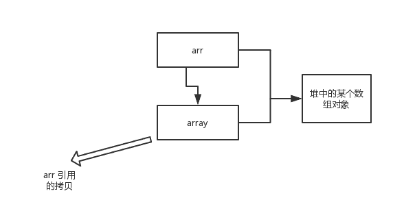 array 被初始化 arr 的拷贝也就是一个对象的引用,也就是说 array 和 arr 指向的时同一个数组对象。 因此,外部对引用对象的改变会反映到所对应的对象上。