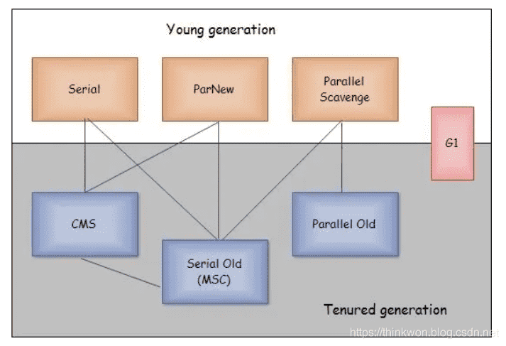 - 新生代回收器:Serial、ParNew、Parallel Scavenge