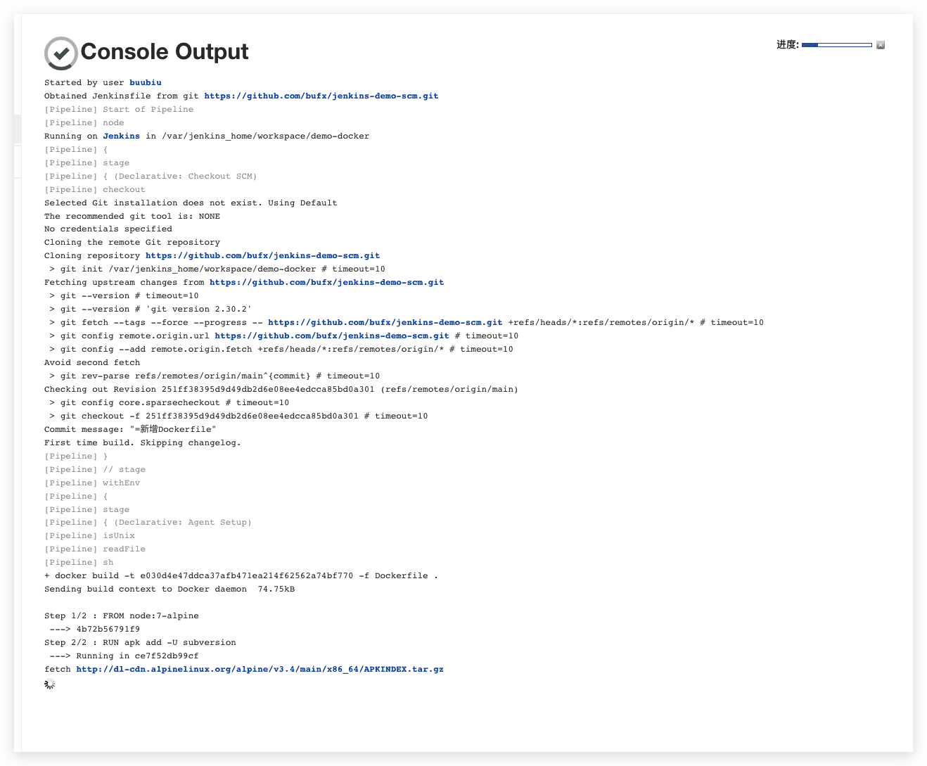 RUN apk add -U subversion然后在新建Jenkinsfile编写pipeline