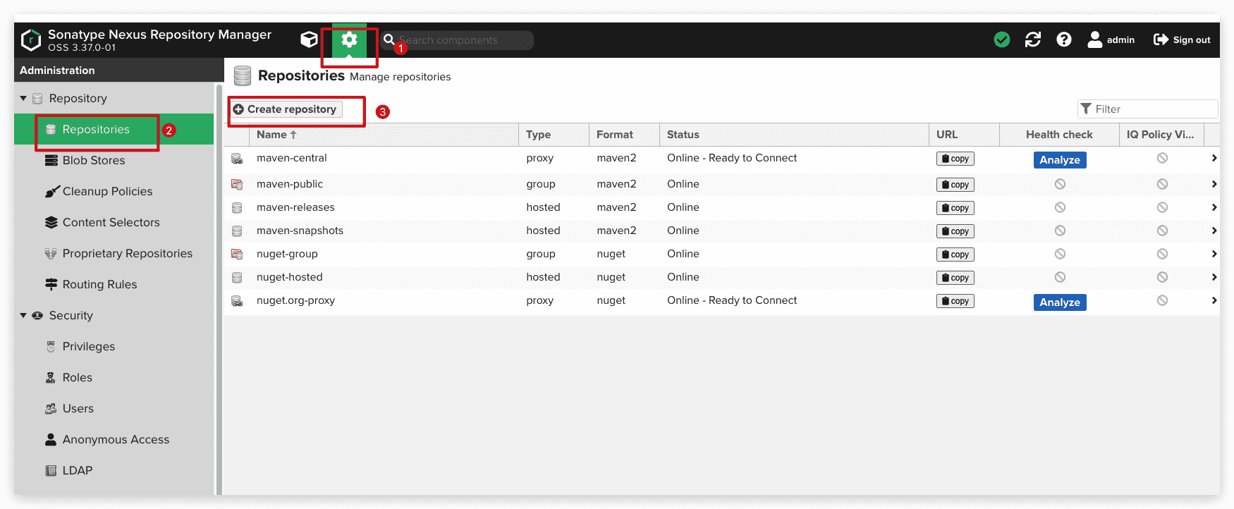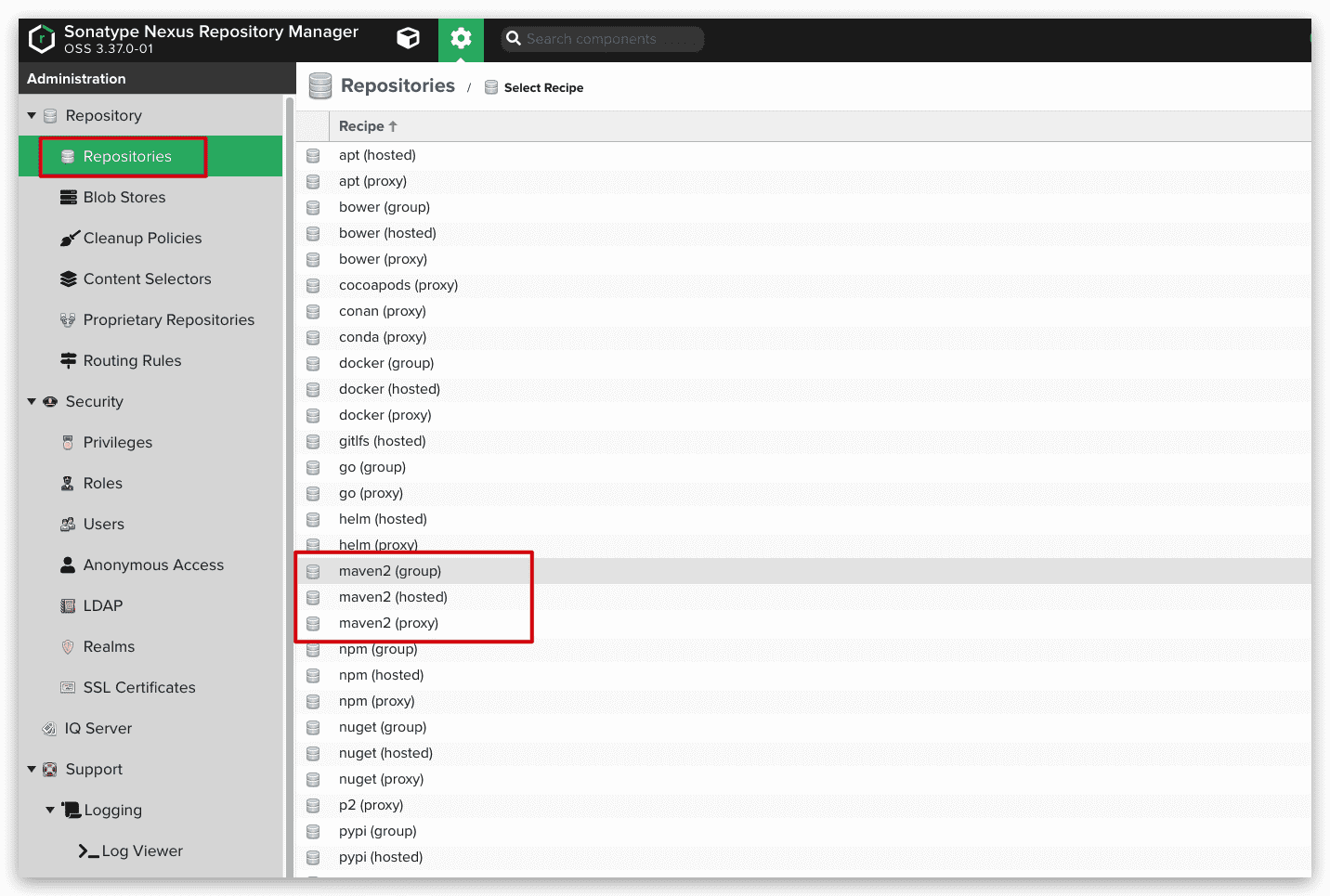 maven2 (hosted)类型的仓库链接到私有仓库中的镜像maven2 (proxy)类型的仓库链接到 Maven公共仓库 或其他私服 上,并缓存到 Nexus 中maven2 (group)类型的仓库把刚才的hosted与proxy添加在一起,主机在访问的时候默认下载私有仓库中的jar包,如果没有将链接到 代理服 中下载并缓存到 Nexus 中。