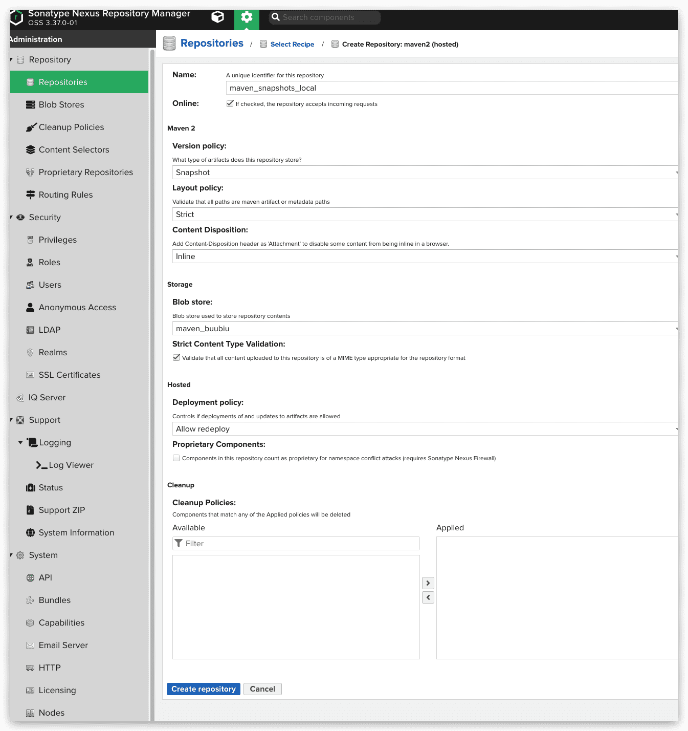 - Maven2.Version policy:仓库类型,这里可以选择 snapshots、releases
