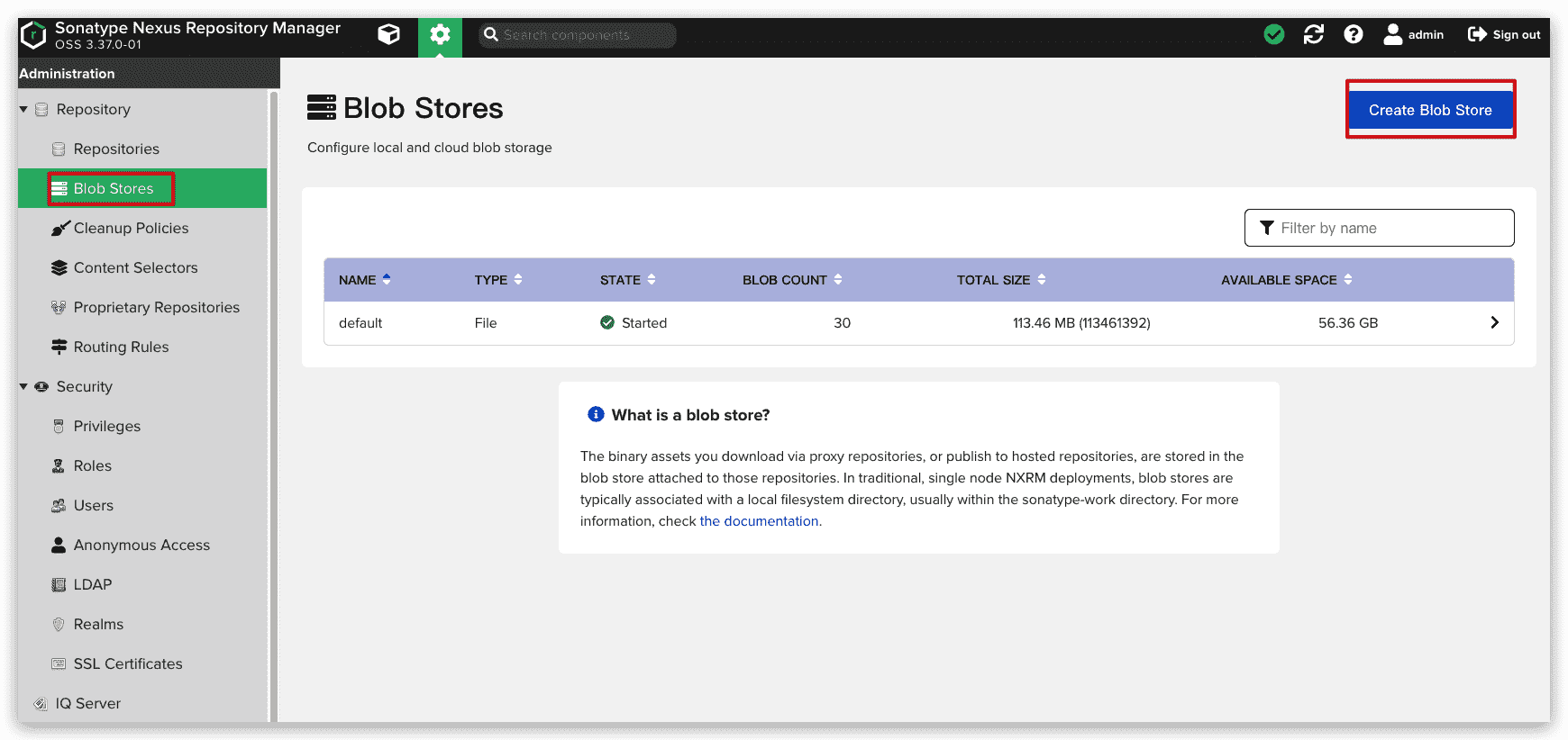 首先创建一个blob存储,用以和其他的仓库进行区分开来,当然,也可以不创建