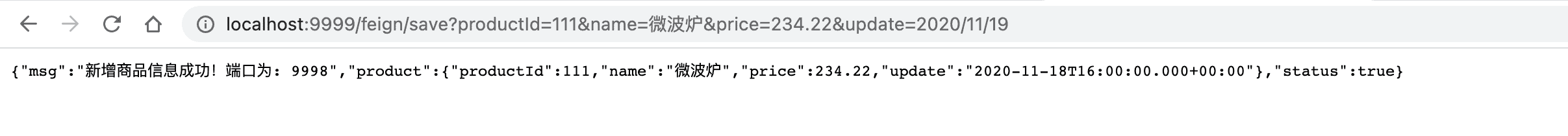 @GetMapping("/feign/save") public Map<String, Object> save(Product product) { log.info("用来测试OpenFiegn的POST方式传递对象参数"); Map<String, Object> msg = productClient.save(product); log.info("调用返回信息:[{}]", msg); return msg; } }