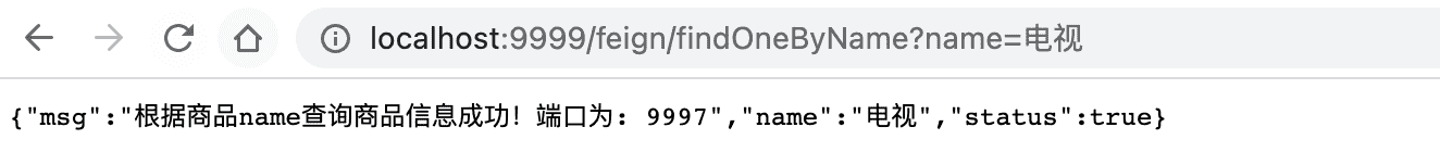 @GetMapping("/feign/findOneByName") public Map<String, Object> findOneByName(String name) { log.info("用来测试OpenFiegn的POST方式传递零散参数"); Map<String, Object> msg = productClient.findOneByName(name); log.info("调用返回信息:[{}]", msg); return msg; } }