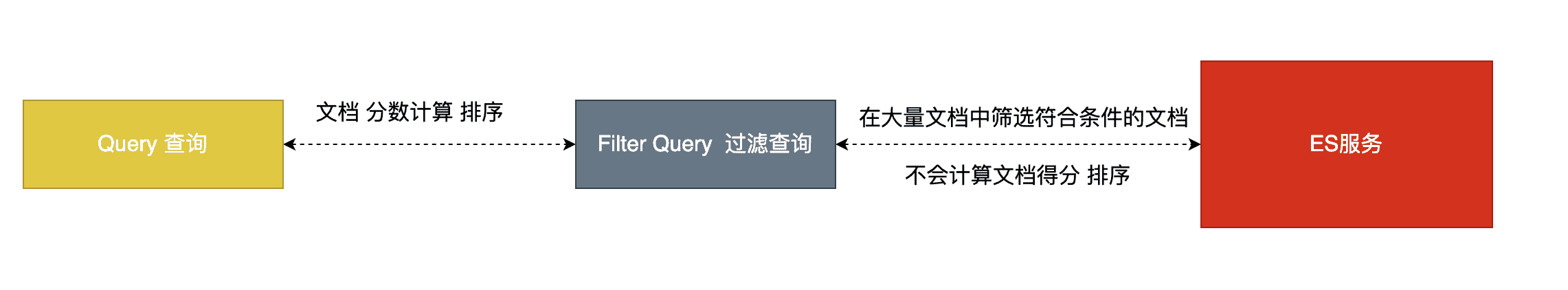 其实准确来说,ES中的查询操作分为2种: 查询(query)和过滤(filter)。查询即是之前提到的query查询,它 (查询)默认会计算每个返回文档的得分,然后根据得分排序。而过滤(filter)只会筛选出符合的文档,并不计算 得分,且它可以缓存文档 。所以,单从性能考虑,过滤比查询更快。
