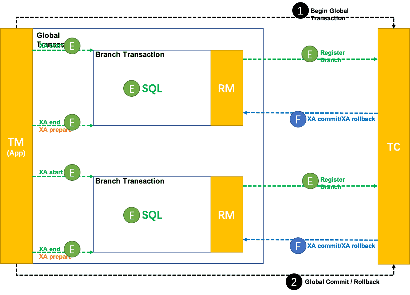 TM要求TC开始新的全局事务。 TC生成表示全局事务的XID。