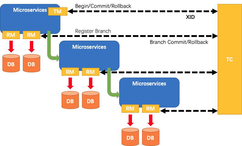 根据两阶段行为模式的不同,我们将分支事务划分为 Automatic (Branch) Transaction Mode 和 TCC (Branch) Transaction Mode.